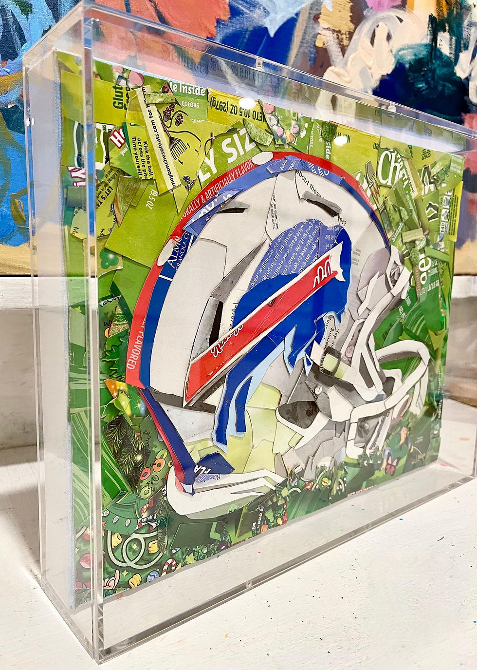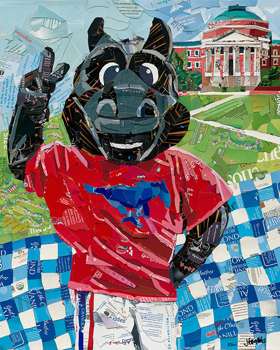 Jenny has been almost exclusively dedicated to the medium of paint on canvas for 30 years. With this body of work, she has a new approach to making “paintings.” Archiving hundreds of cereal boxes and making thousands of cuts, she creates portraits of her favorite subjects.